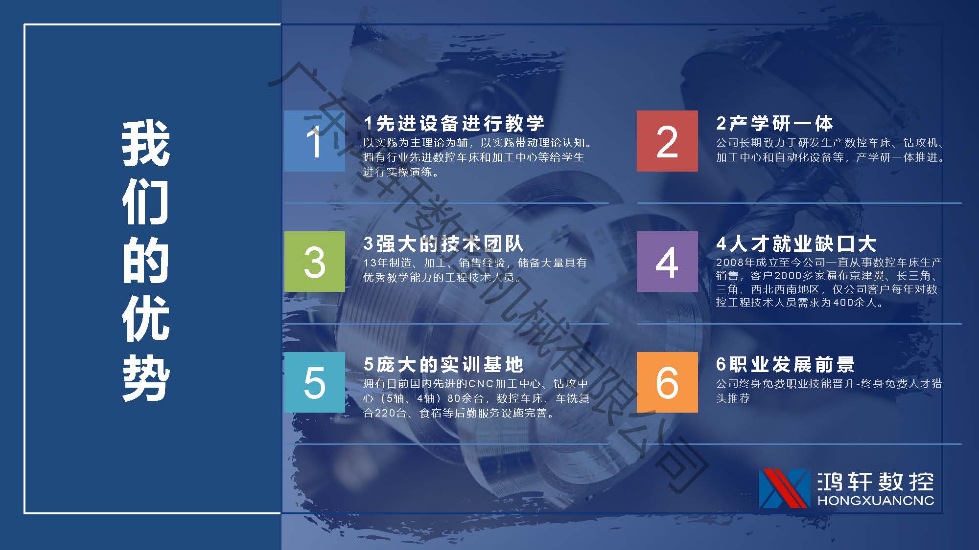 鸿轩智造将10余年先进数控机床设备使用、生产、销售、技术服务与高校职业院校,将先进制造业数控人才成功经验复制于合作高校,定向培养产业高素质人才。为企业解决人才短缺,为学校解决招生、专业建设、就业/创业等问题。